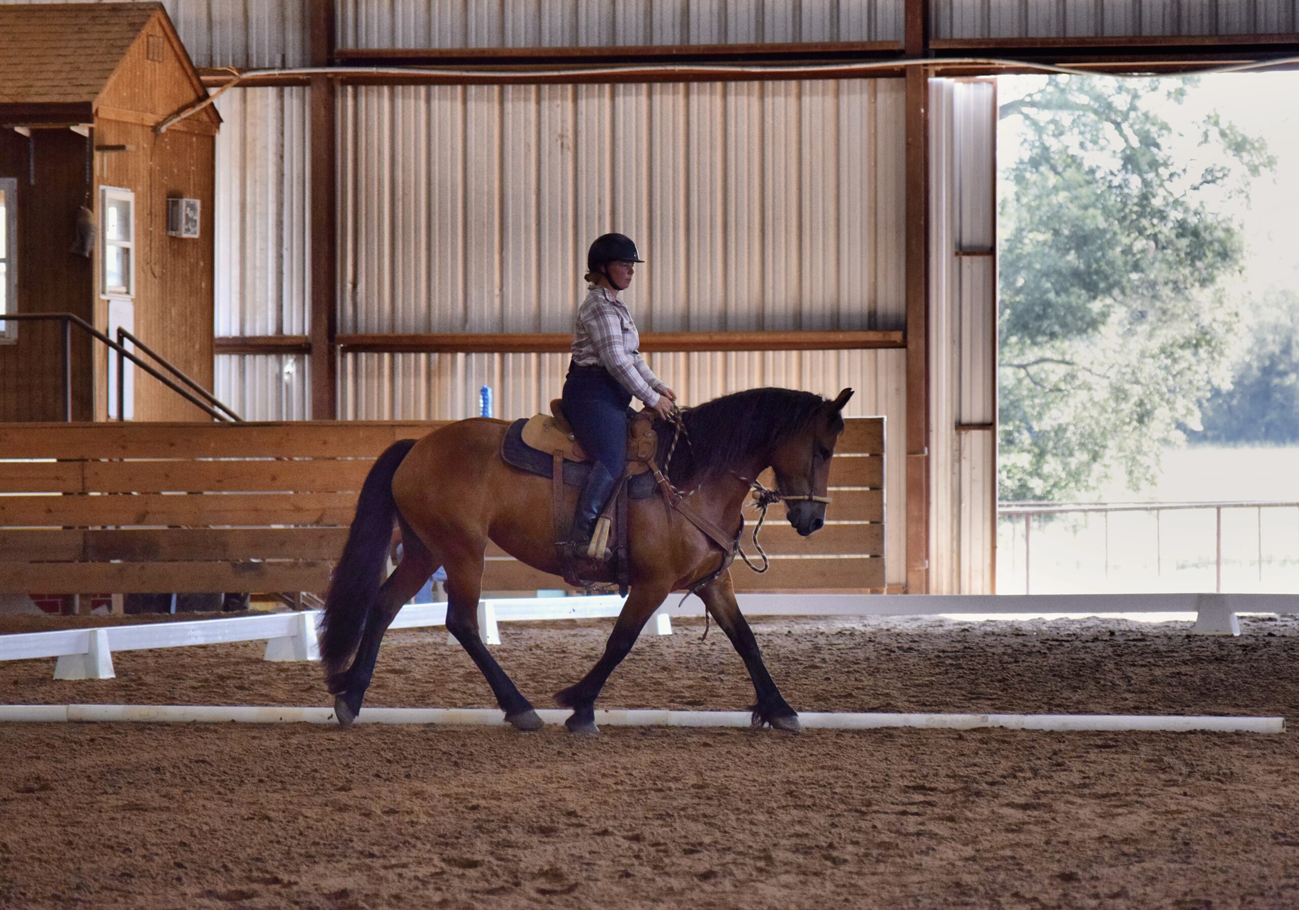 Shown in ranch versatility, competitive trail and western dressage. Shown thru Basic WDAA classes (~USDF training), schooling level 1 WDAA (~USDF first). Confidence over obstacles, water, trail riding alone or with a group in various locations and terrain. Would be a perfect mount for working equitation! Rosie has been working and showing in a bosal, but beginning to transition to bridle/bit with no issues. She will be continuing her show record this fall in local OK dressage schooling shows as well as a Ranch Obstacle Challenge Fall Buckle Series, held in NW Arkansas, until sold.