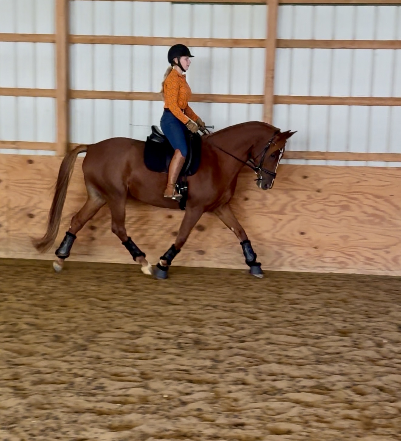 She is ready to start her competitive career with a AA or JR/YR. Although very safe, Seleste can be a bit “looky” and so is not for timid or beginner riders.