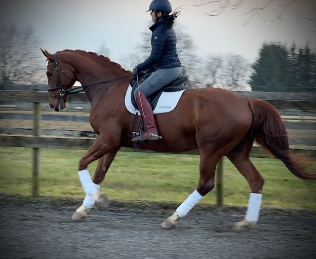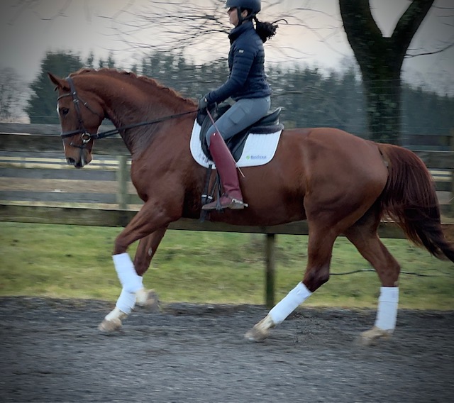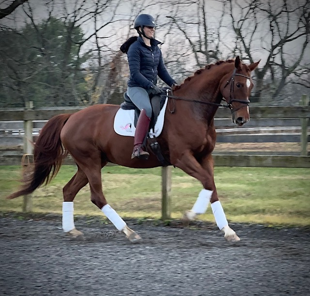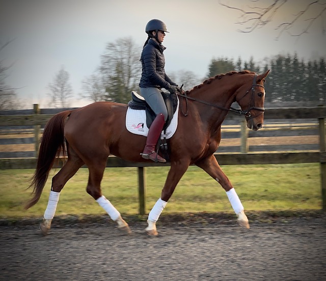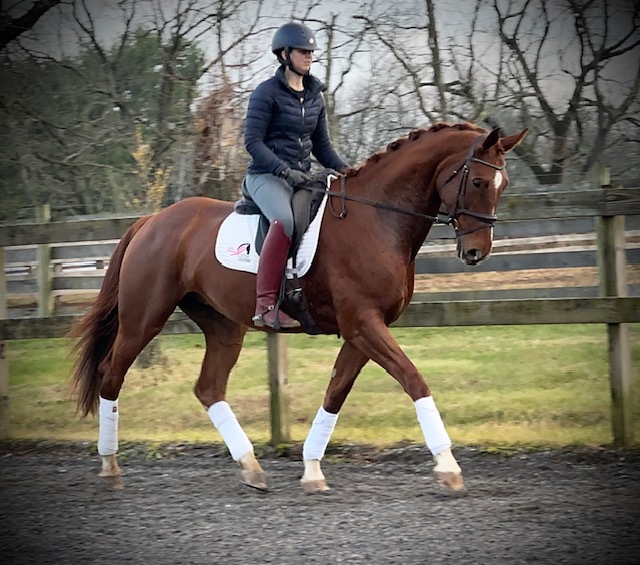 Sorelle is a gorgeous bright talented girl destined for big things! She is currently owned by her breeder. She competed at Dressage at Devon this fall and had excellent placings in the Materiale. Sorelle is schooling First level with the talent and mind to go up the levels. Her canter is a highlight! She is sound with no vices and no health concerns. She is an easy keeper with normal shoes.